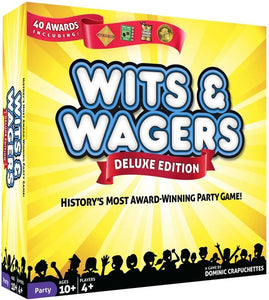 Wits & Wagers is a trivia game that lets you bet on anyone's answer. So you can win by making educated guesses, by playing the odds, or by knowing the interests of your friends. It can be taught in 2 minutes, played in 25 minutes, and accommodates up to 20 people in teams.